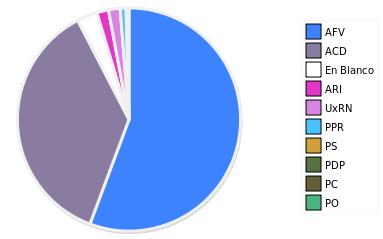 - Columna Porcentaje sobre Válidos no toma en cuenta los votos en blanco ni nulos (usado para D'Hondt de corresponder).