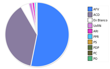 - Columna Porcentaje sobre Válidos no toma en cuenta los votos en blanco ni nulos (usado para D'Hondt de corresponder).