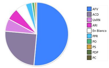 - Columna Porcentaje sobre Válidos no toma en cuenta los votos en blanco ni nulos (usado para D'Hondt de corresponder).