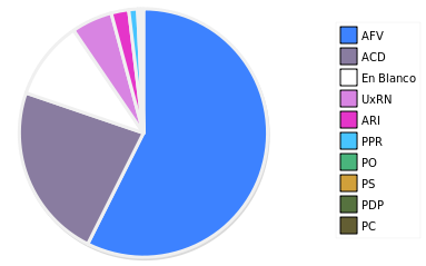 - Columna Porcentaje sobre Válidos no toma en cuenta los votos en blanco ni nulos (usado para D'Hondt de corresponder).