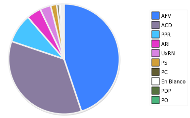 - Columna Porcentaje sobre Válidos no toma en cuenta los votos en blanco ni nulos (usado para D'Hondt de corresponder).