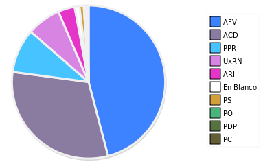 - Columna Porcentaje sobre Válidos no toma en cuenta los votos en blanco ni nulos (usado para D'Hondt de corresponder).