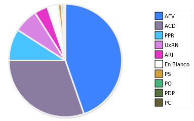 - Columna Porcentaje sobre Válidos no toma en cuenta los votos en blanco ni nulos (usado para D'Hondt de corresponder).