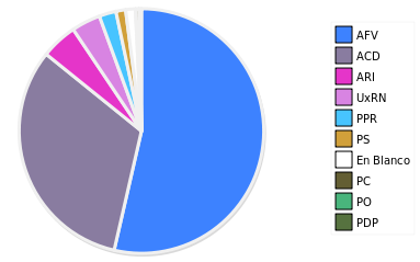 - Columna Porcentaje sobre Válidos no toma en cuenta los votos en blanco ni nulos (usado para D'Hondt de corresponder).