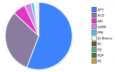 - Columna Porcentaje sobre Válidos no toma en cuenta los votos en blanco ni nulos (usado para D'Hondt de corresponder).