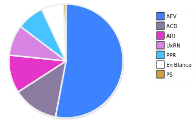 - Columna Porcentaje sobre Válidos no toma en cuenta los votos en blanco ni nulos (usado para D'Hondt de corresponder).