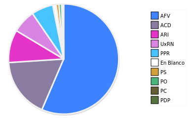 - Columna Porcentaje sobre Válidos no toma en cuenta los votos en blanco ni nulos (usado para D'Hondt de corresponder).