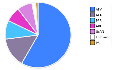 - Columna Porcentaje sobre Válidos no toma en cuenta los votos en blanco ni nulos (usado para D'Hondt de corresponder).