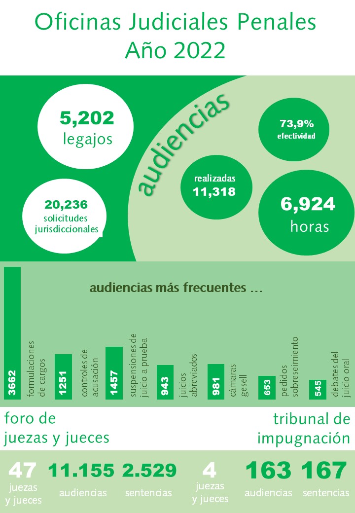 La OJU es un organismo administrativo, que sirve de soporte y apoyo a la actividad jurisdiccional de los Foros de Jueces y Juezas de nuestra provincia. Se encuentra integrada por una Dirección General de Oficinas Judiciales y por 4 (cuatro) Oficinas Judiciales Circunscripcionales.