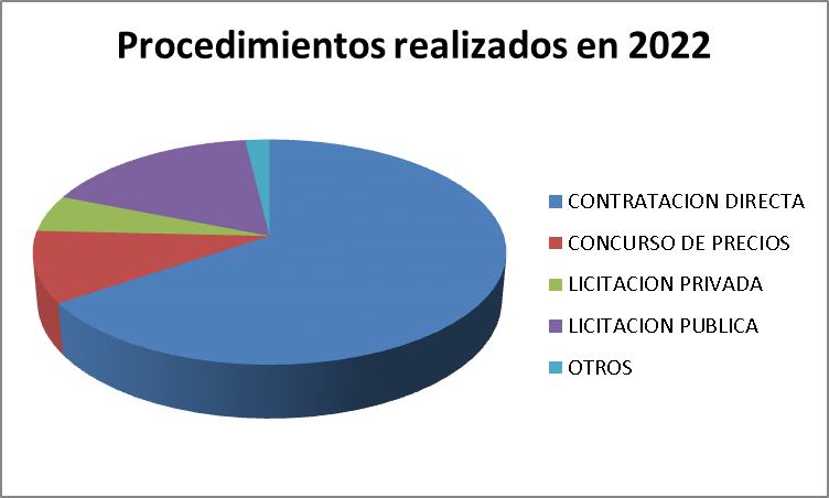 Entre las acciones concretadas durante el año 2022 a través de la Dirección de Compras, Ventas y Contrataciones pueden mencionarse que, desde la Subdirección de Compras se iniciaron un total de 264 trámites, correspondientes a: 173 Contrataciones Directas, 27 Concursos de Precios, 45 Licitaciones Públicas, 14 Licitaciones Privadas y 5 correspondientes a otros procesos (remates, comodatos, etc).