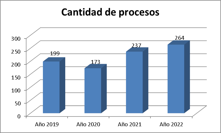 Si comparamos la cantidad de procesos desde el año 2019 al 2021, la representación de los mismos es la siguiente: