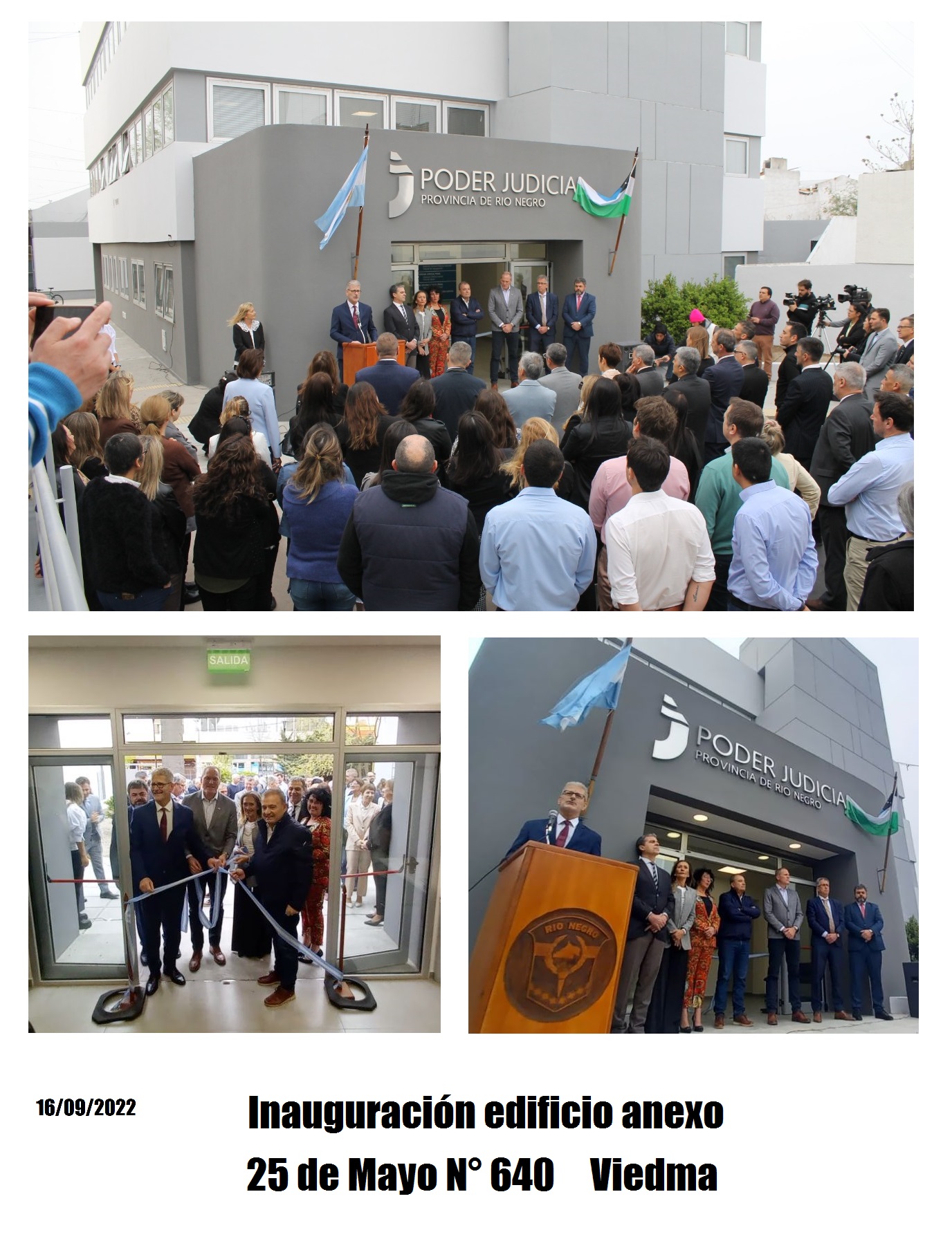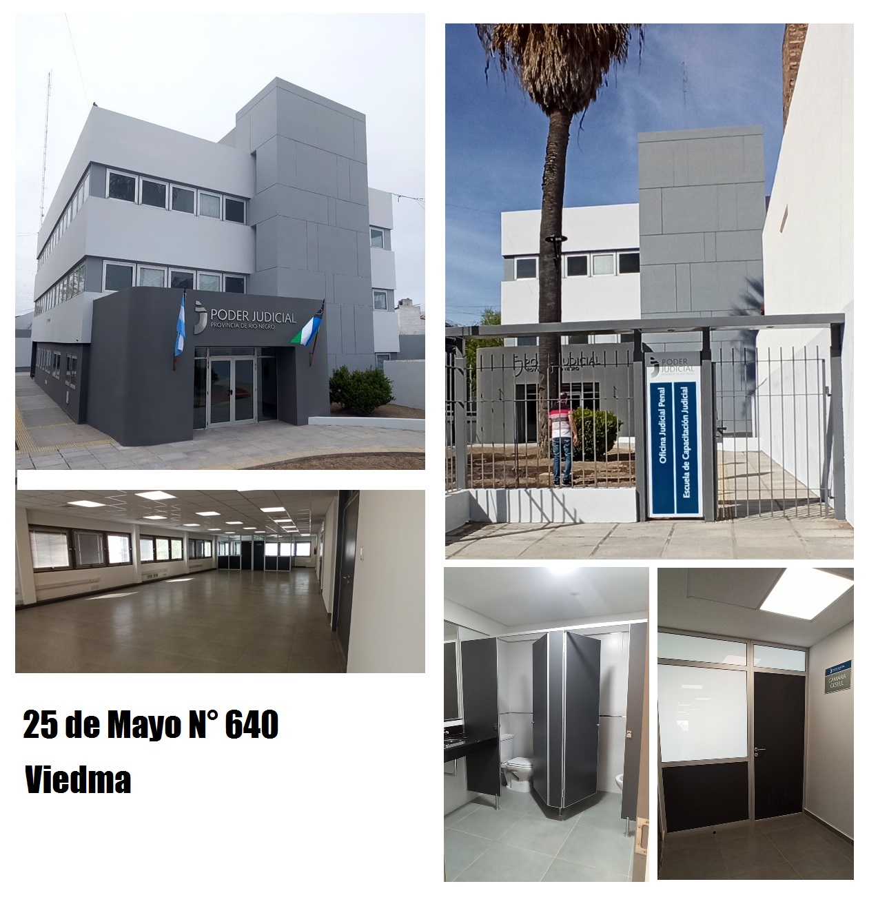 En septiembre se inauguró el edificio de 25 de Mayo 640 de Viedma, con una superficie intervenida de 1241 metros cuadrados. Se trata del edificio propio, anexo a la sede central del Poder Judicial de calle Laprida, donde funcionan la Escuela de Capacitación Judicial y las dependencias funcionales del fuero Penal: el Foro de Jueces y Juezas penales, la Dirección de Oficinas Judiciales y el Tribunal de Impugnación provincial.