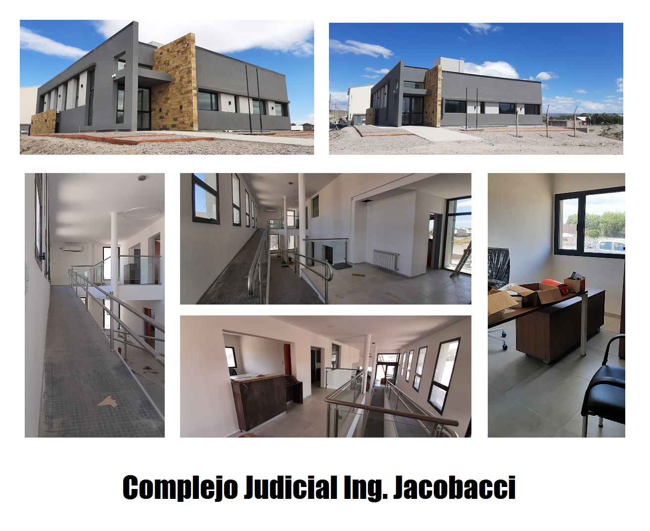 La construcción del Complejo Judicial de Cipolletti alcanzó un 60% en 2022. Tendrá más de 11.000 metros cuadrados y hacia el final del año se estaba finalizando la colocación de solados, vidriado, revestimiento, carpintería y courtain wall, equipos de termo mecánica, ascensores, red de datos y red eléctrica y sistema contra incendios.