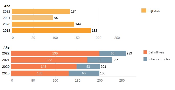 En 2022 los ingresos a esta secretaría sumaron un total de 128 expedientes nuevos, presentando un aumento del 20,75%, respecto a igual período del año anterior.