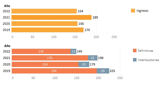 En 2022 el Superior Tribunal de Justicia, a través de sus cuatro secretarías jurisdiccionales, dictó 585 sentencias definitivas que se distribuyeron, por fuero, de la siguiente manera: